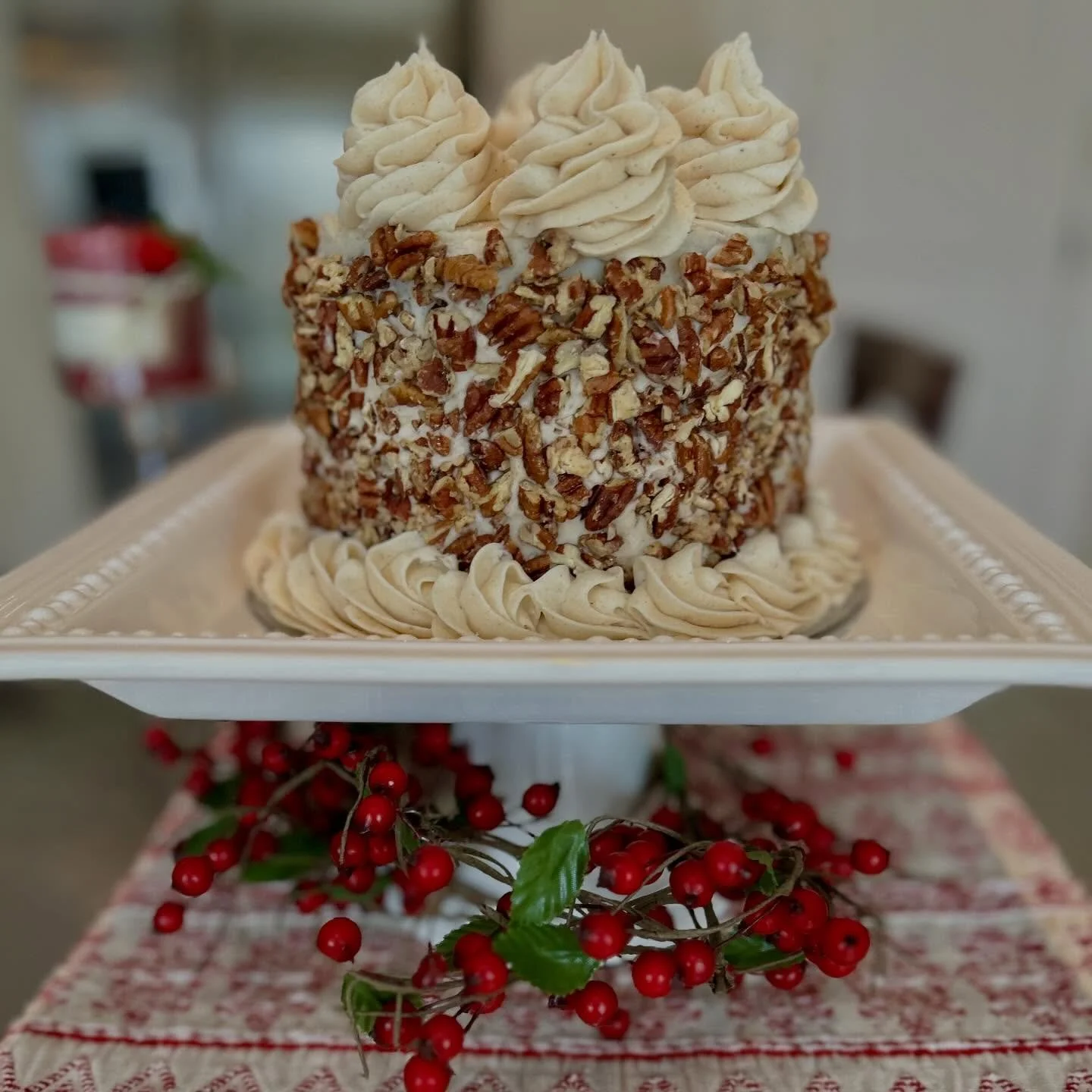 Toasted Almond ~ Almond Cake, Berry Compote, Almond Buttercream with Toasted Almond Crunch!