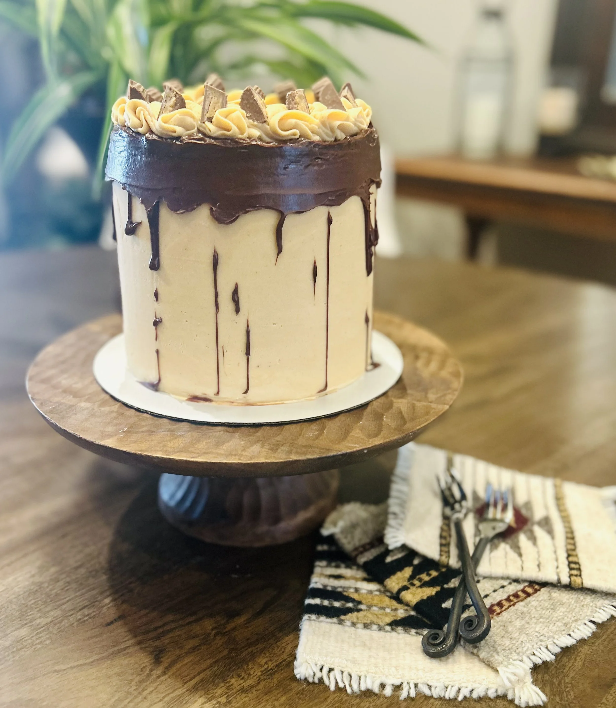 Tilly’s Favorite ~ Chocolate Cake, Peanut Butter Buttercream, Milk Chocolate Fudge & Reese’s!